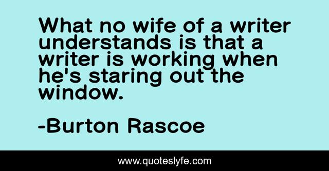 This page presents the quote "What no wife of a writer understands is that a writer is working when he's staring out the window.". Author of this quote is Burton Rascoe. .