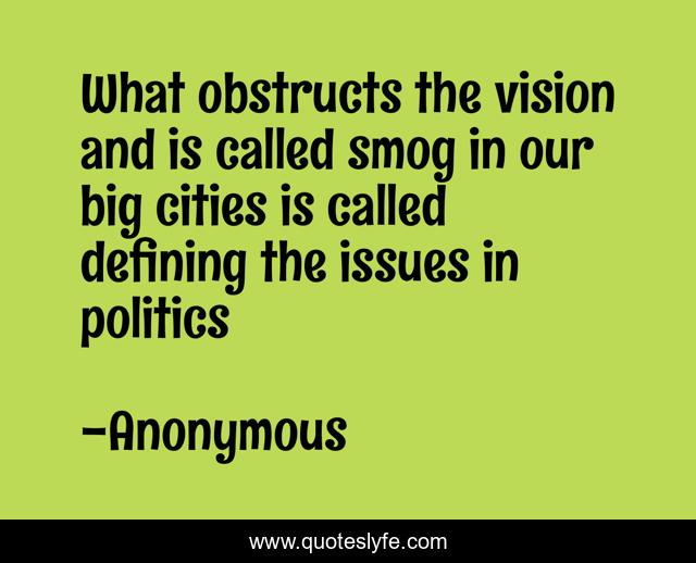 This page presents the quote "What obstructs the vision and is called smog in our big cities is called defining the issues in politics". Author of this quote is Anonymous. .