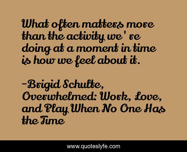 "Brigid Schulte, Overwhelmed: Work, Love, and Play When No One Has the Time Quotes." Quoteslyfe.com, 2025. Fri. 05 Dec. 2025. <https://www.quoteslyfe.com/quote/What-often-matters-more-than-the-activity-185916>.