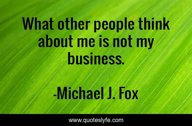 This page presents the quote "What other people think about me is not my business.". Author of this quote is Michael J. Fox. This quote is about me, think, people,.
