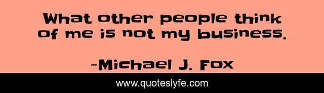 This page presents the quote "What other people think of me is not my business.". Author of this quote is Michael J. Fox. This quote is about enthusiasm, inspirational,.