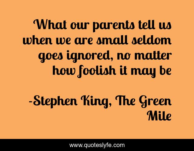 "Stephen King, The Green Mile Quotes." Quoteslyfe.com, 2025. Fri. 05 Dec. 2025. <https://www.quoteslyfe.com/quote/What-our-parents-tell-us-when-we-143418>.