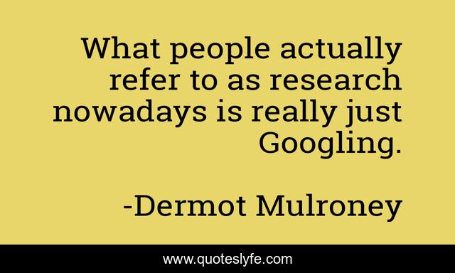 This page presents the quote "What people actually refer to as research nowadays is really just Googling.". Author of this quote is Dermot Mulroney. This quote is about research, just, people,.