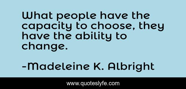 This page presents the quote "What people have the capacity to choose, they have the ability to change.". Author of this quote is Madeleine K. Albright. This quote is about freedom, free-will, change, choice,.