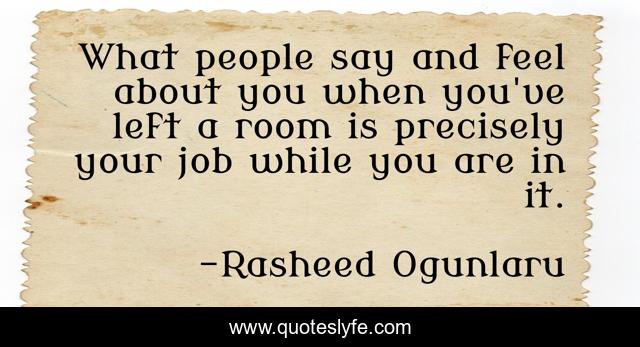 What people say and feel about you when you've left a room is precisely your job while you are in it.