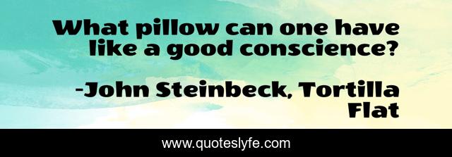This page presents the quote "What pillow can one have like a good conscience?". Author of this quote is John Steinbeck, Tortilla Flat. This quote is about conscience, sleep, pillow,.