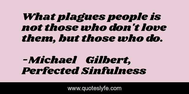 This page presents the quote "What plagues people is not those who don't love them, but those who do.". Author of this quote is Michael Gilbert, Perfected Sinfulness. This quote is about heartache, love, breaking-up, breakups, heartbreak, affection,.