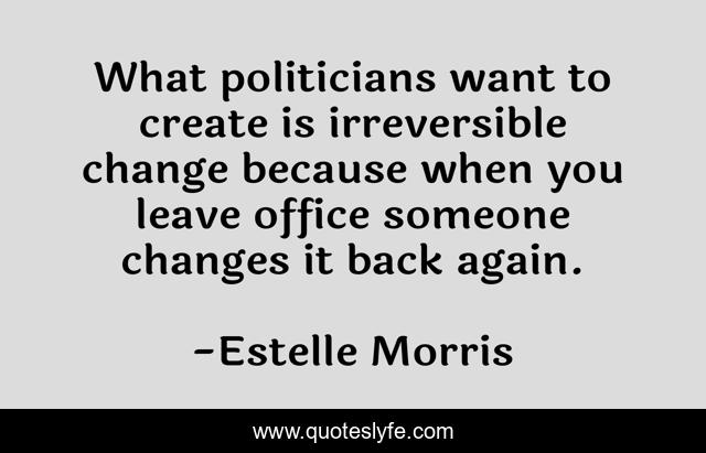 This page presents the quote "What politicians want to create is irreversible change because when you leave office someone changes it back again.". Author of this quote is Estelle Morris. This quote is about changes, change,.