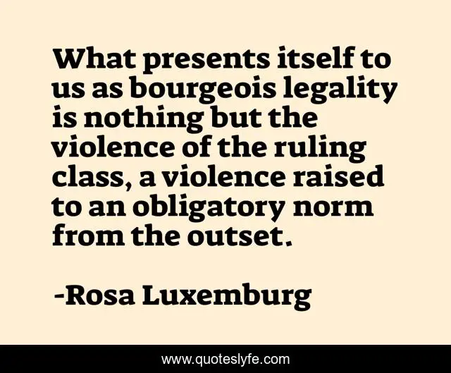 This page presents the quote "What presents itself to us as bourgeois legality is nothing but the violence of the ruling class, a violence raised to an obligatory norm from the outset.". Author of this quote is Rosa Luxemburg. This quote is about marxism, rosa-luxemburg, revolution, law,.