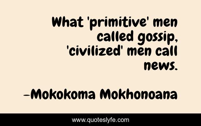 "Mokokoma Mokhonoana Quotes." Quoteslyfe.com, 2025. Fri. 05 Dec. 2025. <https://www.quoteslyfe.com/quote/What-primitive-men-called-gossip-civilized-men-239750>.