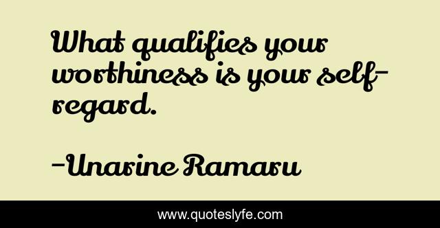 This page presents the quote "What qualifies your worthiness is your self-regard.". Author of this quote is Unarine Ramaru. This quote is about self-respect, self-awareness, worthiness, positivity, self-worth, positive-attitude, self-regard, self-esteem,.