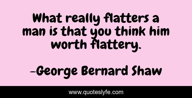 This page presents the quote "What really flatters a man is that you think him worth flattery.". Author of this quote is George Bernard Shaw. This quote is about flattery, praise,.