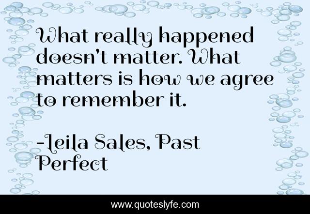 "Leila Sales, Past Perfect Quotes." Quoteslyfe.com, 2025. Fri. 05 Dec. 2025. <https://www.quoteslyfe.com/quote/What-really-happened-doesn-t-matter-What-18052>.