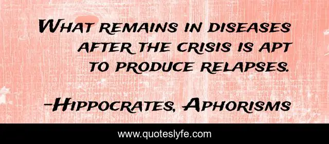 "Hippocrates, Aphorisms Quotes." Quoteslyfe.com, 2025. Fri. 05 Dec. 2025. <https://www.quoteslyfe.com/quote/What-remains-in-diseases-after-the-crisis-147928>.
