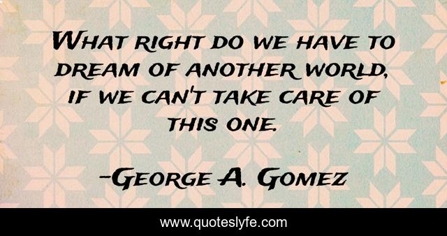 This page presents the quote "What right do we have to dream of another world, if we can't take care of this one.". Author of this quote is George A. Gomez. .