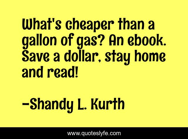 This page presents the quote "What's cheaper than a gallon of gas? An ebook. Save a dollar, stay home and read!". Author of this quote is Shandy L. Kurth. This quote is about fun, reading, author, ebooks,.