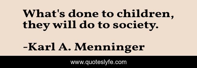 This page presents the quote "What's done to children, they will do to society.". Author of this quote is Karl A. Menninger. This quote is about done, children,.