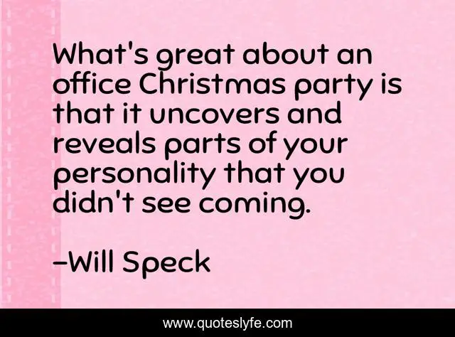 This page presents the quote "What's great about an office Christmas party is that it uncovers and reveals parts of your personality that you didn't see coming.". Author of this quote is Will Speck. This quote is about party, great, personality,.