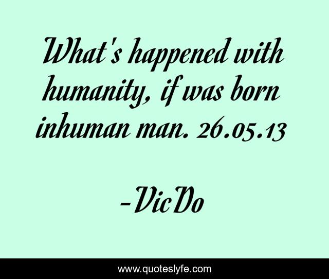 This page presents the quote "What's happened with humanity, if was born inhuman man. 26.05.13". Author of this quote is VicDo. This quote is about inhumanity, mankind, man,.