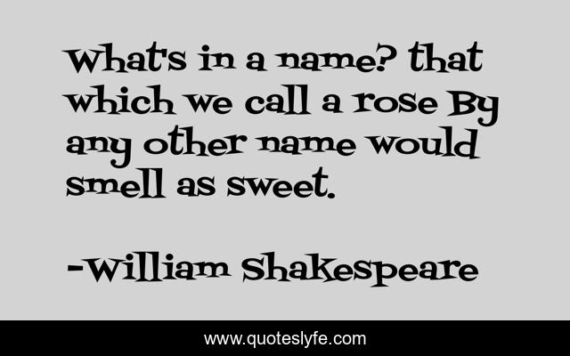 This page presents the quote "What's in a name? that which we call a rose By any other name would smell as sweet.". Author of this quote is William Shakespeare. .