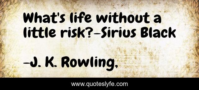 This page presents the quote "What's life without a little risk?-Sirius Black". Author of this quote is J. K. Rowling,. .