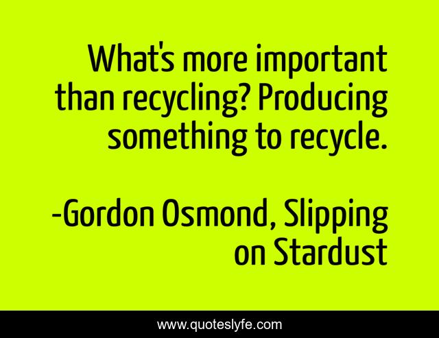 "Gordon Osmond, Slipping on Stardust Quotes." Quoteslyfe.com, 2025. Fri. 05 Dec. 2025. <https://www.quoteslyfe.com/quote/What-s-more-important-than-recycling-Producing-101331>.