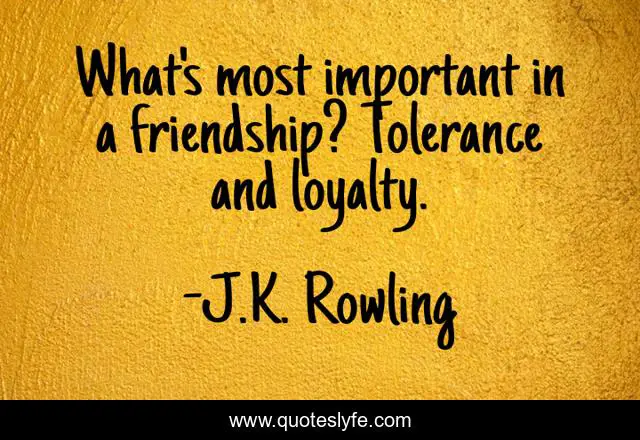 This page presents the quote "What's most important in a friendship? Tolerance and loyalty.". Author of this quote is J.K. Rowling. This quote is about enthusiasm, inspirational,.