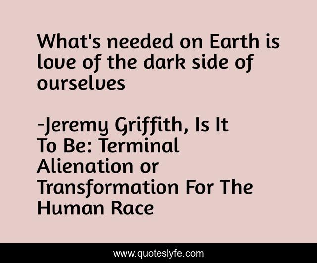 "Jeremy Griffith, Is It To Be: Terminal Alienation or Transformation For The Human Race Quotes." Quoteslyfe.com, 2025. Sun. 07 Dec. 2025. <https://www.quoteslyfe.com/quote/What-s-needed-on-Earth-is-love-192599>.