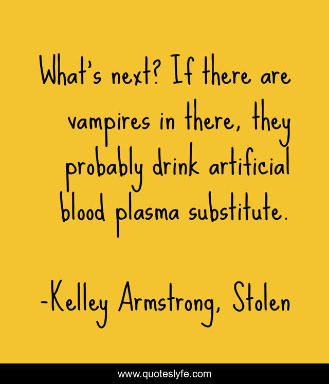 This page presents the quote "What's next? If there are vampires in there, they probably drink artificial blood plasma substitute.". Author of this quote is Kelley Armstrong, Stolen. .