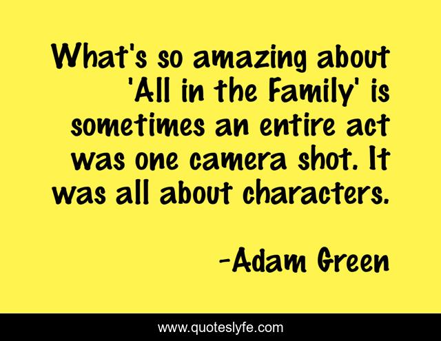 This page presents the quote "What's so amazing about 'All in the Family' is sometimes an entire act was one camera shot. It was all about characters.". Author of this quote is Adam Green. This quote is about camera, family, sometimes,.
