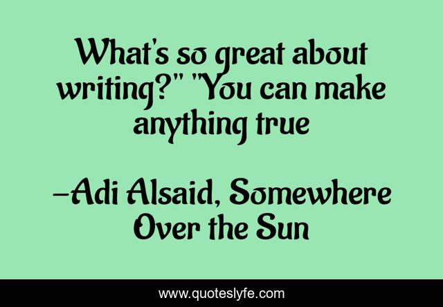 This page presents the quote "What's so great about writing?" "You can make anything true". Author of this quote is Adi Alsaid, Somewhere Over the Sun. .