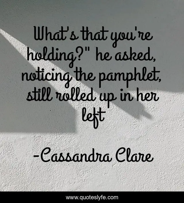 "Cassandra Clare Quotes." Quoteslyfe.com, 2025. Sat. 06 Dec. 2025. <https://www.quoteslyfe.com/quote/What-s-that-you-re-holding-he-190187>.