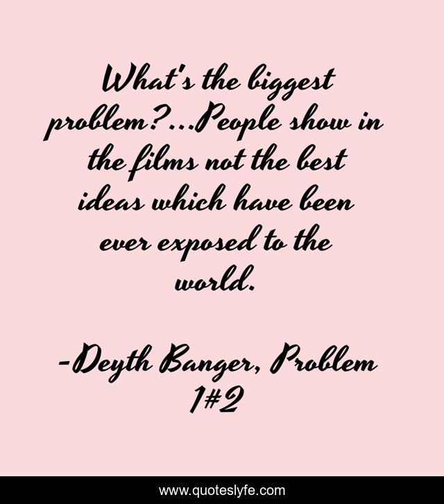 This page presents the quote "What's the biggest problem?...People show in the films not the best ideas which have been ever exposed to the world.". Author of this quote is Deyth Banger, Problem 1#2. This quote is about biggest, problem, exposed,.
