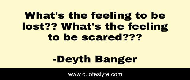 This page presents the quote "What's the feeling to be lost?? What's the feeling to be scared???". Author of this quote is Deyth Banger. This quote is about scary, feels, feeling, scared, lost,.