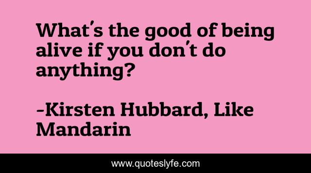"Kirsten Hubbard, Like Mandarin Quotes." Quoteslyfe.com, 2025. Fri. 05 Dec. 2025. <https://www.quoteslyfe.com/quote/What-s-the-good-of-being-alive-105842>.