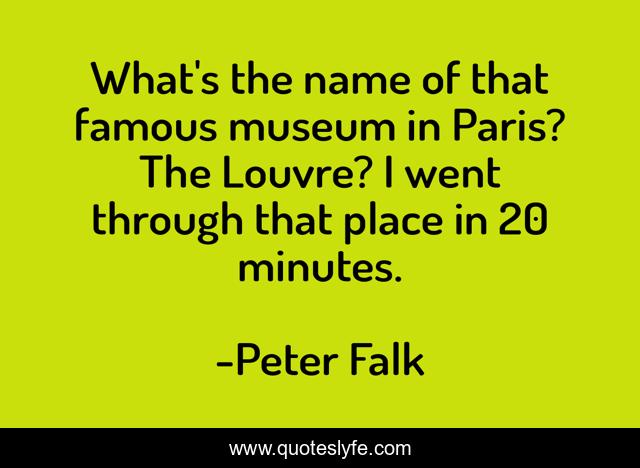 This page presents the quote "What's the name of that famous museum in Paris? The Louvre? I went through that place in 20 minutes.". Author of this quote is Peter Falk. This quote is about museum, place, name,.