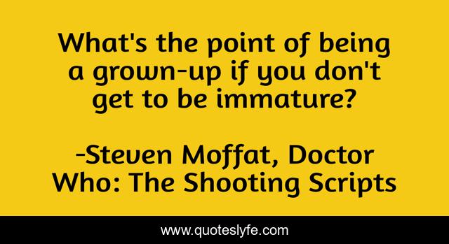 This page presents the quote "What's the point of being a grown-up if you don't get to be immature?". Author of this quote is Steven Moffat, Doctor Who: The Shooting Scripts. .