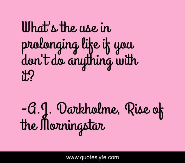 "A.J. Darkholme, Rise of the Morningstar Quotes." Quoteslyfe.com, 2025. Sun. 07 Dec. 2025. <https://www.quoteslyfe.com/quote/What-s-the-use-in-prolonging-life-142393>.