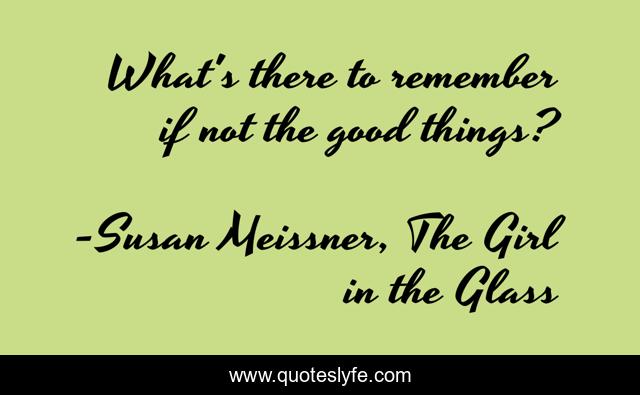This page presents the quote "What's there to remember if not the good things?". Author of this quote is Susan Meissner, The Girl in the Glass. .