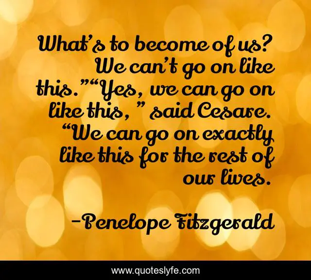 This page presents the quote "What’s to become of us? We can’t go on like this.”“Yes, we can go on like this, ” said Cesare. “We can go on exactly like this for the rest of our lives.". Author of this quote is Penelope Fitzgerald. This quote is about sadness, inconclusive, samuel-beckett,.