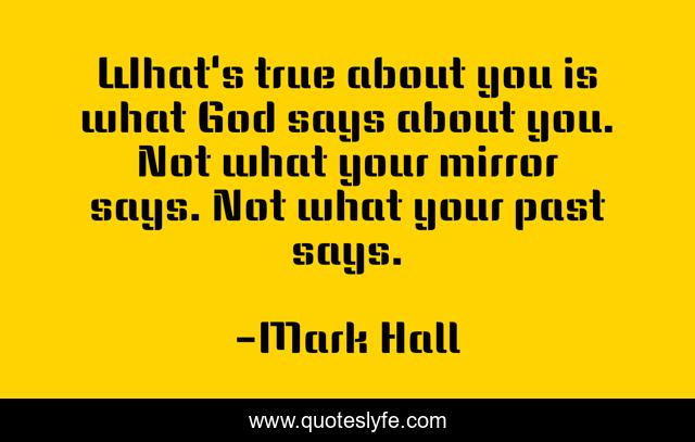 This page presents the quote "What's true about you is what God says about you. Not what your mirror says. Not what your past says.". Author of this quote is Mark Hall. This quote is about religion, self-worth,.