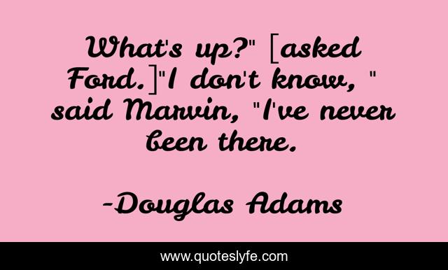 This page presents the quote "What's up?" [asked Ford.]"I don't know, " said Marvin, "I've never been there.". Author of this quote is Douglas Adams. .