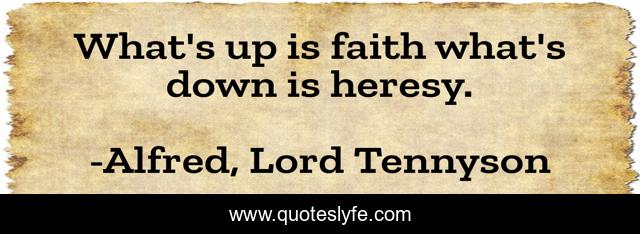 This page presents the quote "What's up is faith what's down is heresy.". Author of this quote is Alfred, Lord Tennyson. This quote is about faith, unity,.