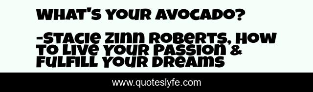 "Stacie Zinn Roberts, How to Live Your Passion & Fulfill Your Dreams Quotes." Quoteslyfe.com, 2025. Fri. 05 Dec. 2025. <https://www.quoteslyfe.com/quote/What-s-your-avocado-93173>.