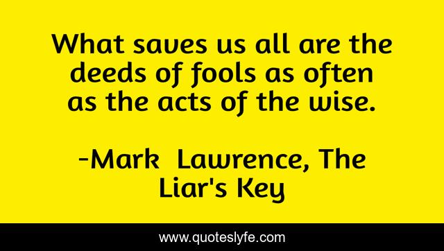 This page presents the quote "What saves us all are the deeds of fools as often as the acts of the wise.". Author of this quote is Mark Lawrence, The Liar's Key. .