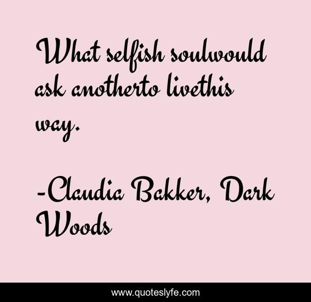 "Claudia Bakker, Dark Woods Quotes." Quoteslyfe.com, 2025. Fri. 05 Dec. 2025. <https://www.quoteslyfe.com/quote/What-selfish-soulwould-ask-anotherto-livethis-way-63788>.
