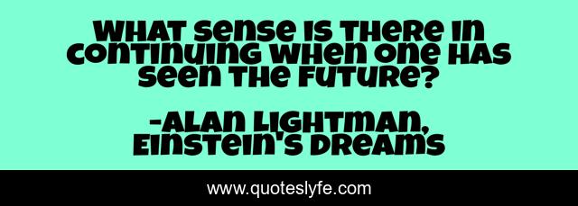 This page presents the quote "What sense is there in continuing when one has seen the future?". Author of this quote is Alan Lightman, Einstein's Dreams. .