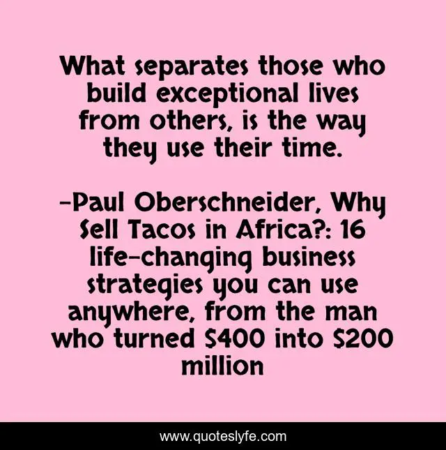 "Paul Oberschneider, Why Sell Tacos in Africa?: 16 life-changing business strategies you can use anywhere, from the man who turned $400 into $200 million Quotes." Quoteslyfe.com, 2025. Sat. 06 Dec. 2025. <https://www.quoteslyfe.com/quote/What-separates-those-who-build-exceptional-lives-64560>.