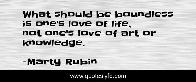 This page presents the quote "What should be boundless is one's love of life, not one's love of art or knowledge.". Author of this quote is Marty Rubin. This quote is about love-of-life, art, ideas, knowledge,.