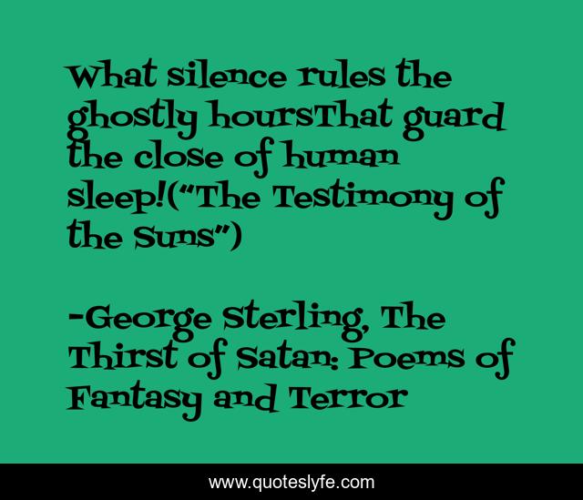 "George Sterling, The Thirst of Satan: Poems of Fantasy and Terror Quotes." Quoteslyfe.com, 2025. Sat. 06 Dec. 2025. <https://www.quoteslyfe.com/quote/What-silence-rules-the-ghostly-hoursThat-guard-168534>.